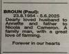 Death notice clipping for William James Broun found in Caroline Broun's Journal