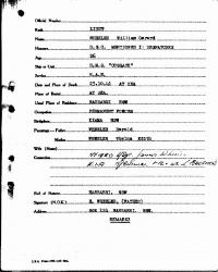 | Birth* | 23 September 1915 | Lieut. William Garard Wheeler D.S.C. was born on 23 September 1915 at Kiama, New South Wales, Australia.1 |